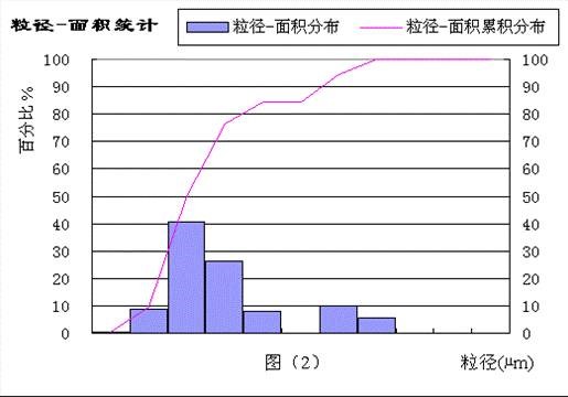 列號一一對應,並生成粒徑個數統計表,粒徑麵積統計表,粒徑分布表,粒徑累計分布表。