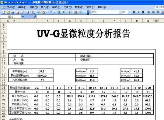 30幾種參數數據。數據可以輸出導入EX**L表格,對攝像的顆粒進行編號,編號跟表格裏的顆粒 序